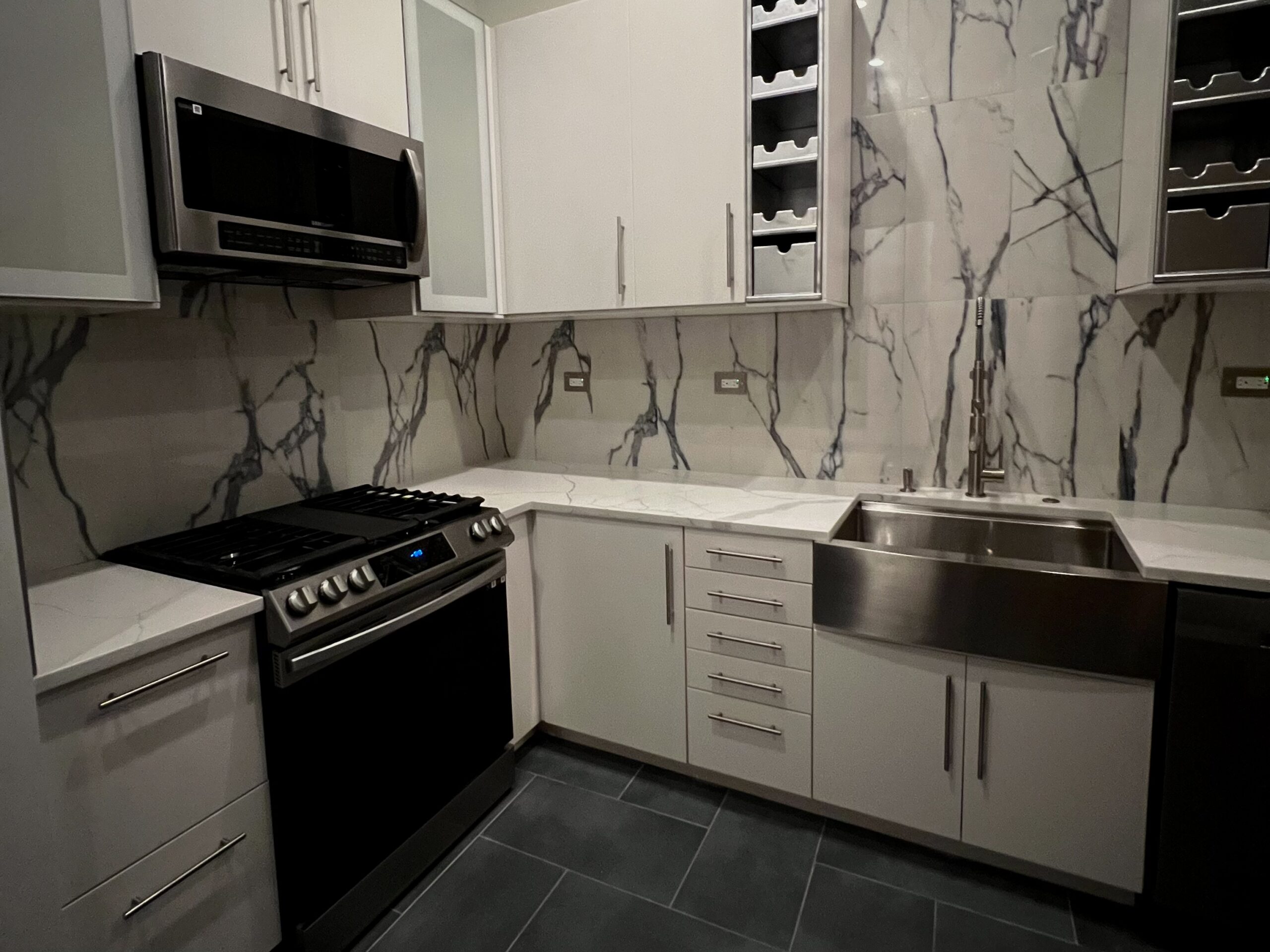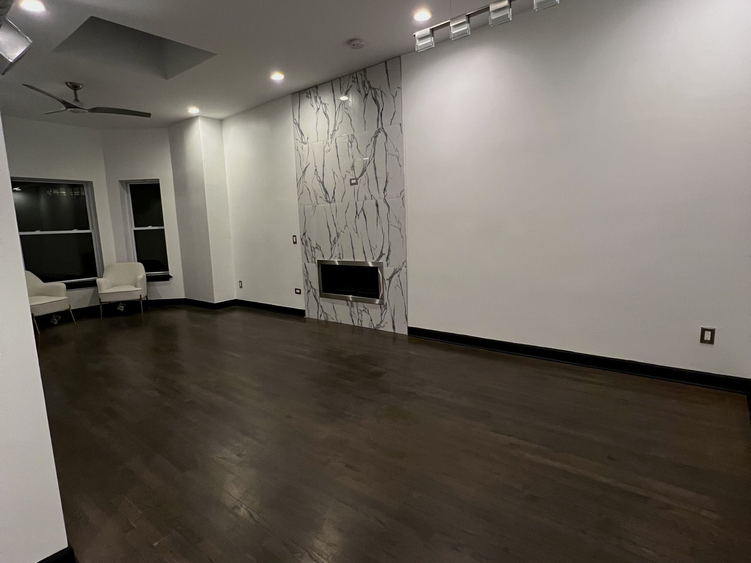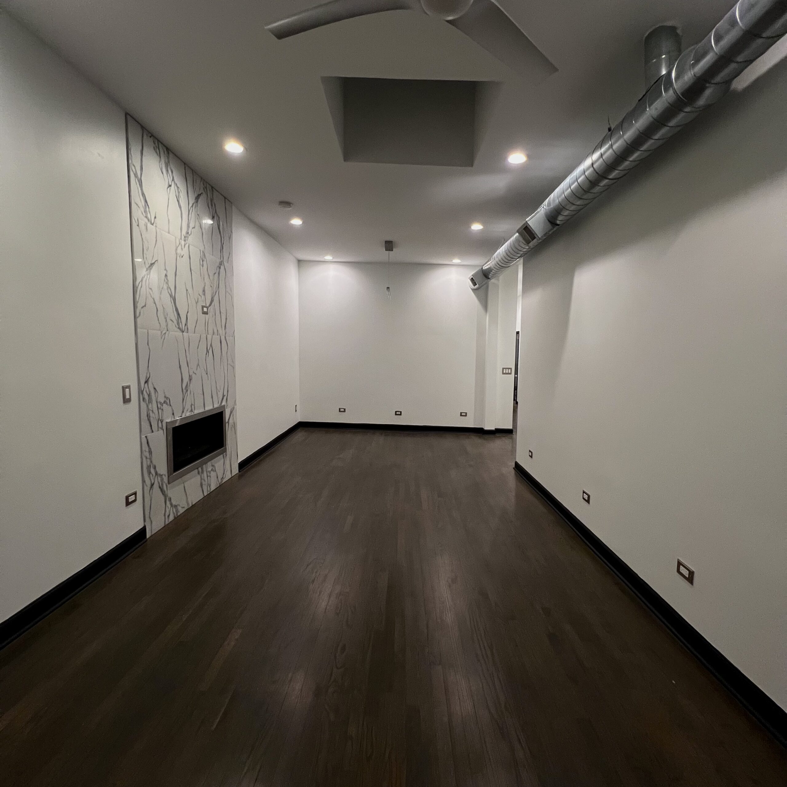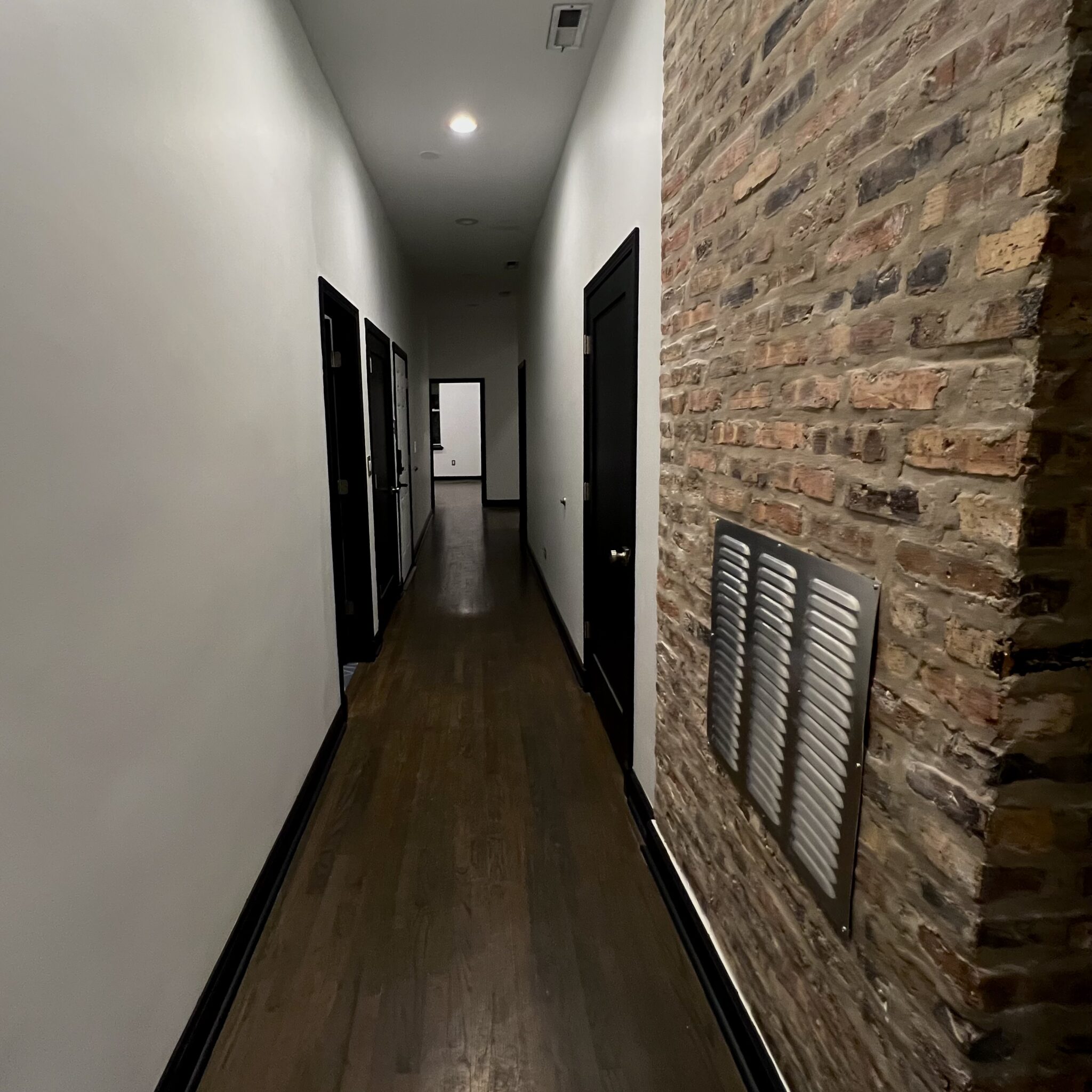 This contemporary Chicago residence combines modern sophistication with timeless architectural charm. Exposed brick walls, marble accents, and clean black finishes create a striking contrast that carries throughout the home. The sleek kitchen, spa-like bathroom, and spacious living areas are thoughtfully designed to balance style and comfort—offering a warm, elevated retreat in the heart of the city.
